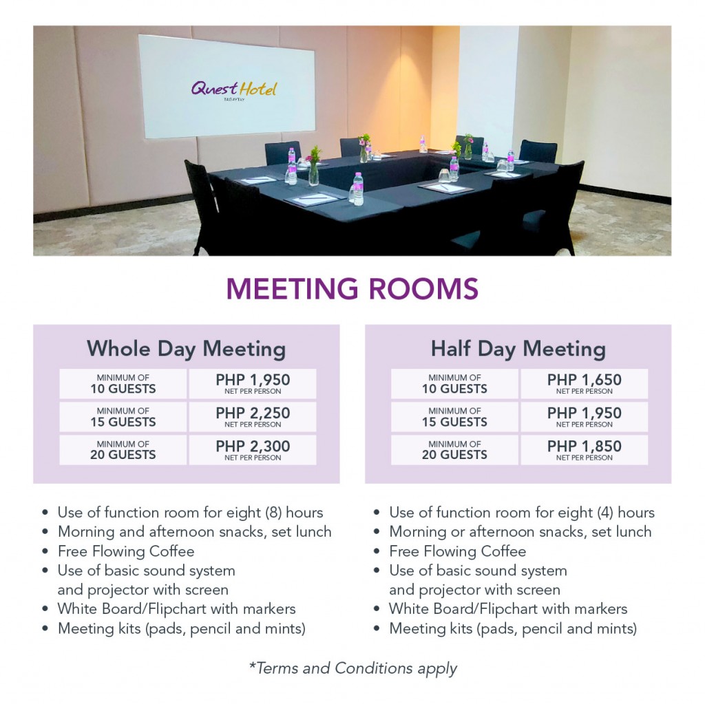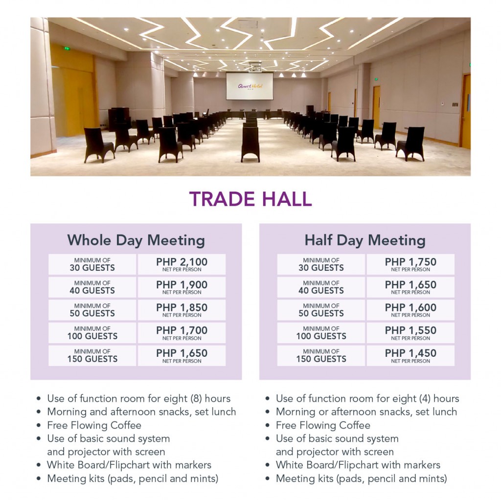 Meetings at Fora Trade Hall located just across Quest Hotel, Tagaytay are designed to provide teams with a safe venue for productive meetings, team building and breakout sessions.